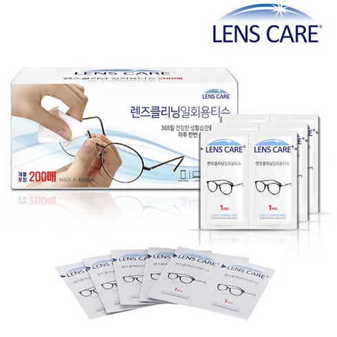 렌즈케어 렌즈클리닝 일회용 티슈 200p, 1개