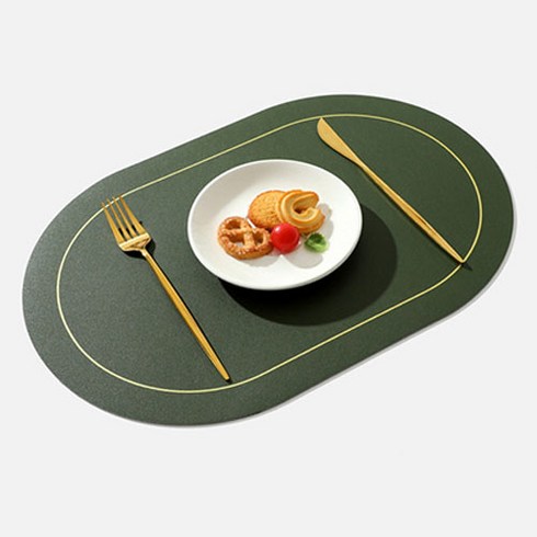캘리웨이브 론드 양면 식탁매트 4개 세트 북유럽 가죽 방수 식탁 테이블 매트, 그린/그레이, (45 x 30cm)