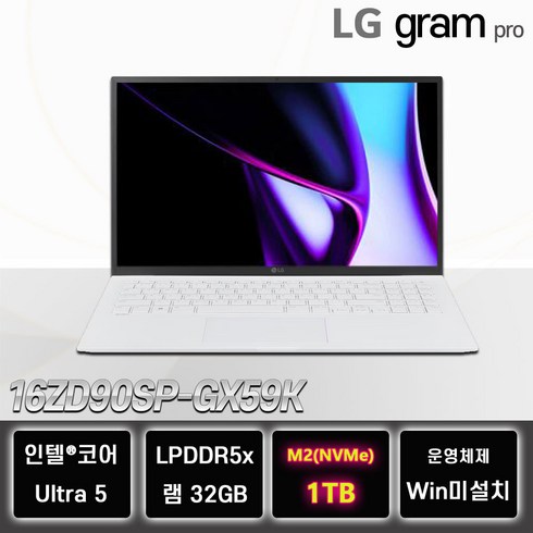 LG그램 프로 16ZD90SP-GX59K Ultra5 엘지 노트북, WIN11 Home, 32GB, 1TB, 화이트
